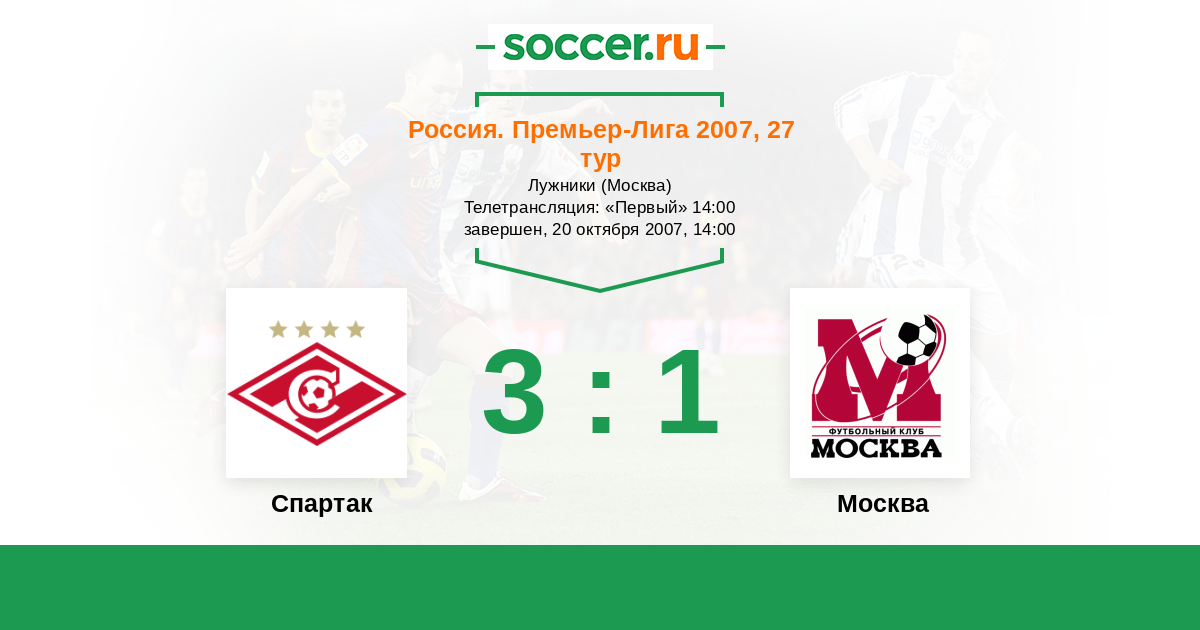 Россия. Премьер-Лига 17.06.2007 ФК Москва Логотип футбольный клуб ФК Москва 2:0 Логотип футбольный клуб Спартак (Москва) Спартак