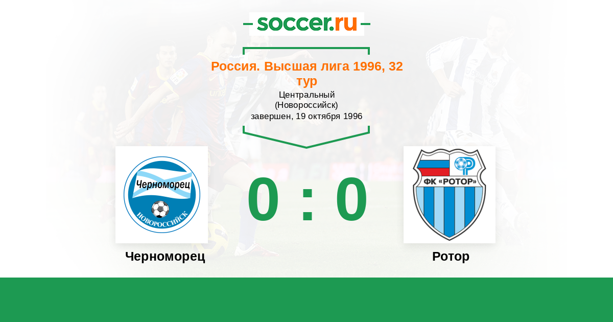 Россия. Премьер-Лига 21.05.1996 Ротор Логотип футбольный клуб Ротор (Волгоград) 3:1 Логотип футбольный клуб Черноморец (Новороссийск) Черноморец