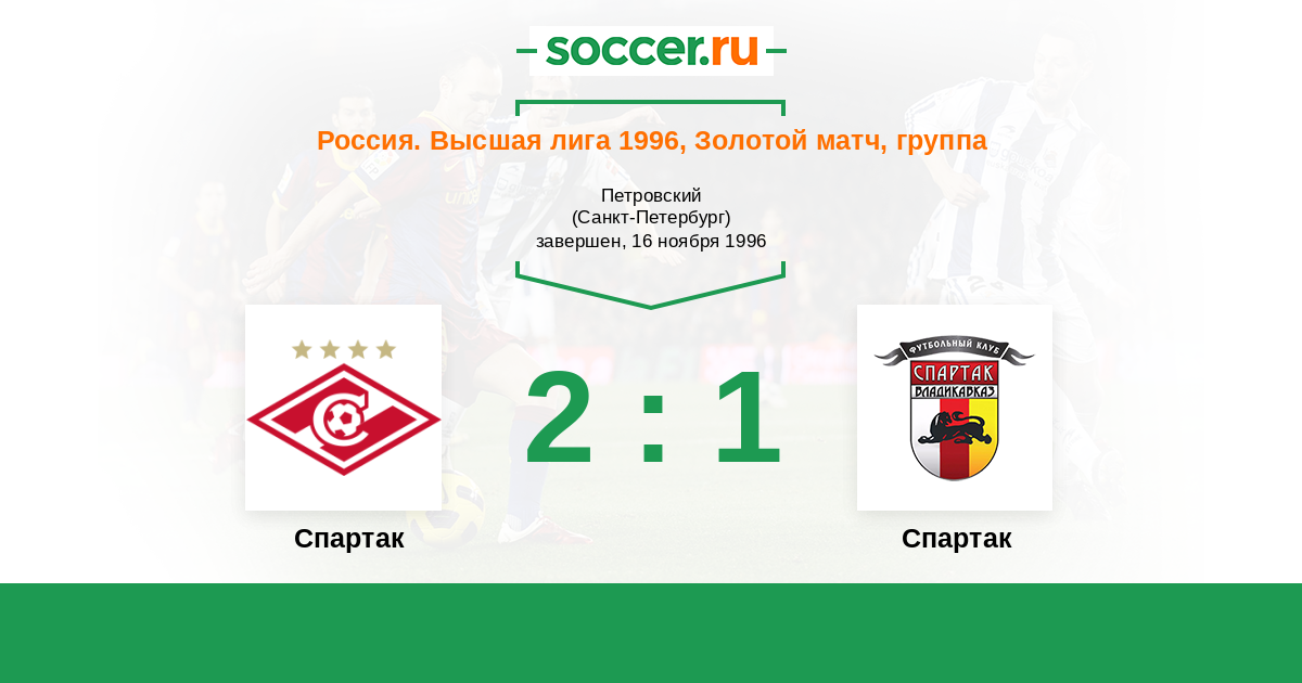 Россия. Премьер-Лига 27.07.1996 Спартак Логотип футбольный клуб Спартак (Владикавказ) 2:2 Логотип футбольный клуб Спартак (Москва) Спартак
