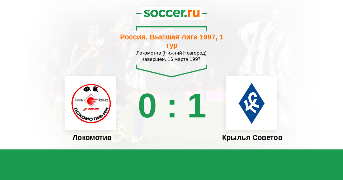 Россия. Премьер-Лига 16.07.1997 Крылья Советов Логотип футбольный клуб Крылья Советов (Самара) 4:0 Логотип футбольный клуб Локомотив (Нижний Новгород) Локомотив