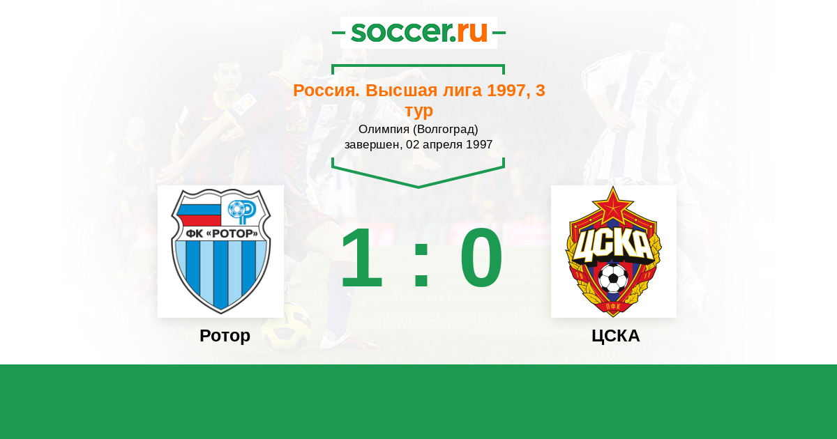 Россия. Премьер-Лига 30.07.1997 ЦСКА Логотип футбольный клуб ЦСКА (Москва) 0:2 Логотип футбольный клуб Ротор (Волгоград) Ротор