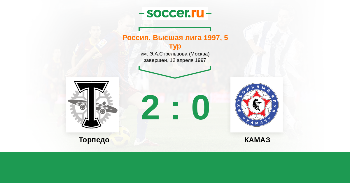 Россия. Премьер-Лига 15.04.1995 Торпедо Логотип футбольный клуб Торпедо (Москва) 2:1 Логотип футбольный клуб КАМАЗ (Набережные Челны) КАМАЗ