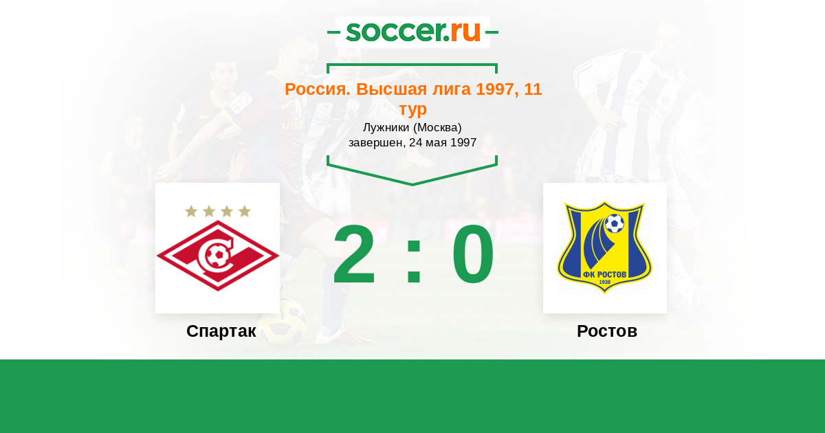 Россия. Премьер-Лига 27.06.2000 Ростсельмаш Логотип футбольный клуб Ростсельмаш (Ростов-на-Дону) 2:3 Логотип футбольный клуб Спартак (Москва) Спартак