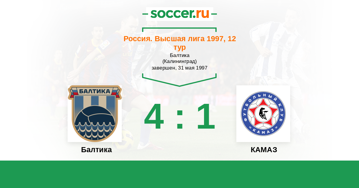 Россия. Первая лига 01.06.2010 Балтика Логотип футбольный клуб Балтика (Калининград) 2:4 Логотип футбольный клуб КАМАЗ (Набережные Челны) КАМАЗ