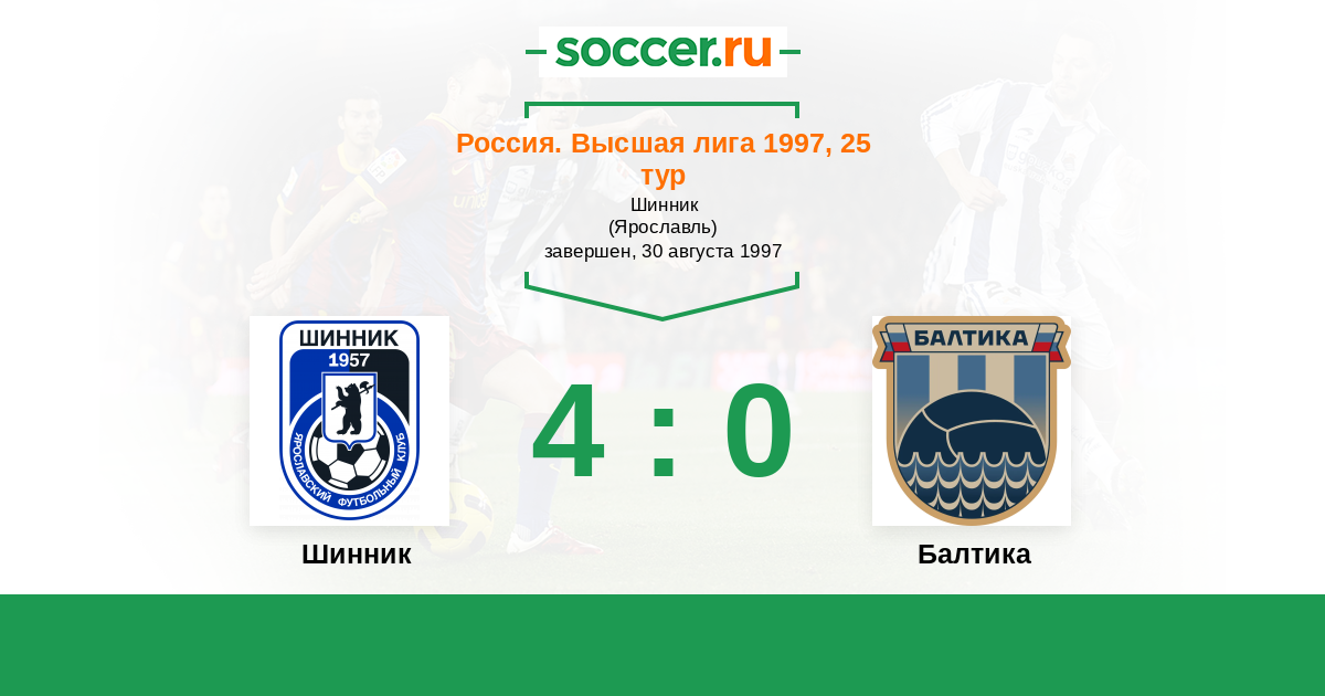 Россия. Премьер-Лига 03.05.1997 Балтика Логотип футбольный клуб Балтика (Калининград) 1:1 Логотип футбольный клуб Шинник (Ярославль) Шинник