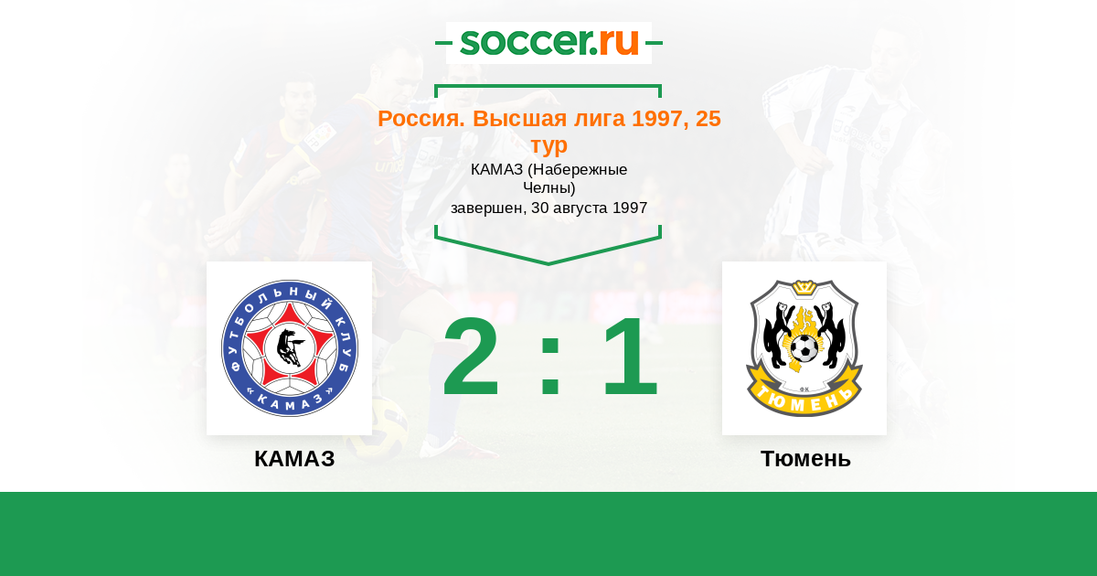 Россия. Премьер-Лига 03.05.1997 Тюмень Логотип футбольный клуб Тюмень 1:0 Логотип футбольный клуб КАМАЗ (Набережные Челны) КАМАЗ