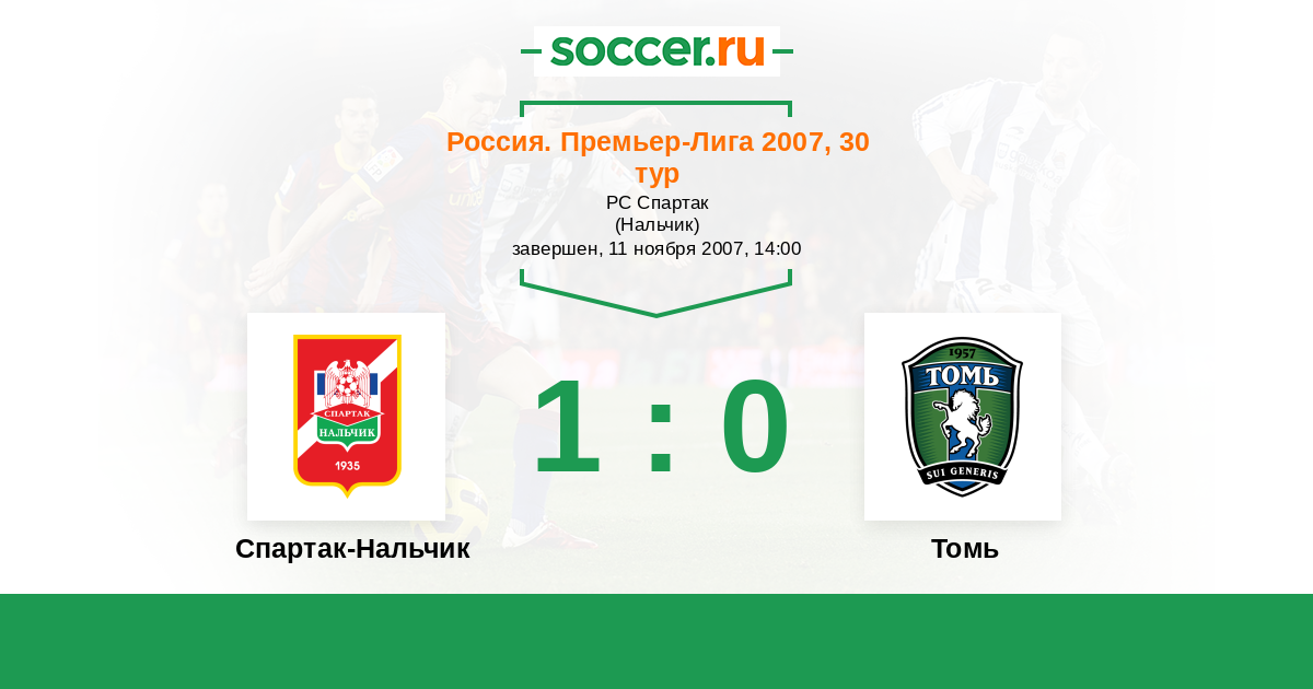 История матча Спартак-Нальчик против Томь