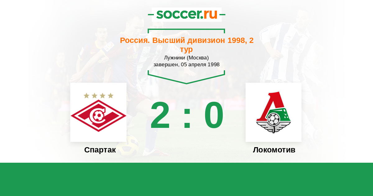 Россия. Премьер-Лига 22.07.1998 Локомотив Логотип футбольный клуб Локомотив (Москва) 0:2 Логотип футбольный клуб Спартак (Москва) Спартак