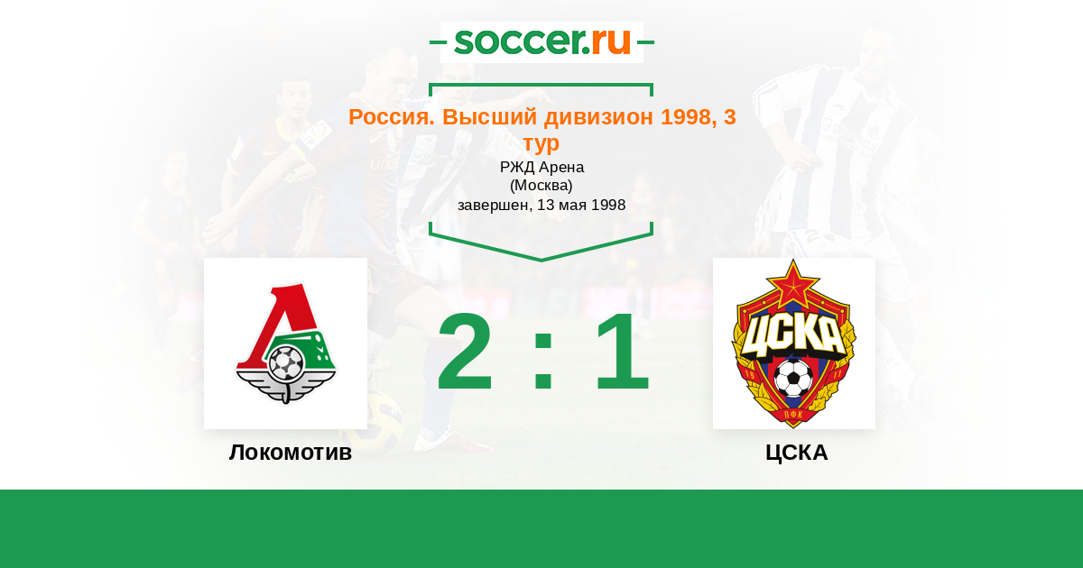 Россия. Премьер-Лига 29.07.1998 ЦСКА Логотип футбольный клуб ЦСКА (Москва) 0:1 Логотип футбольный клуб Локомотив (Москва) Локомотив