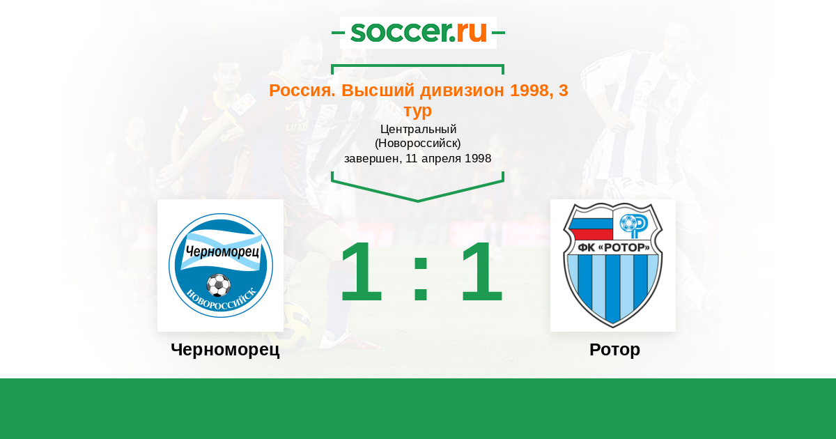 Россия. Премьер-Лига 29.07.1998 Ротор Логотип футбольный клуб Ротор (Волгоград) 3:0 Логотип футбольный клуб Черноморец (Новороссийск) Черноморец