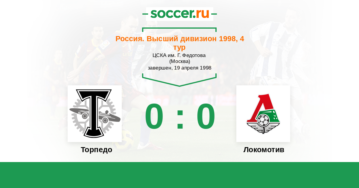 Россия. Премьер-Лига 01.08.1998 Локомотив Логотип футбольный клуб Локомотив (Москва) 2:0 Логотип футбольный клуб Торпедо (Москва) Торпедо