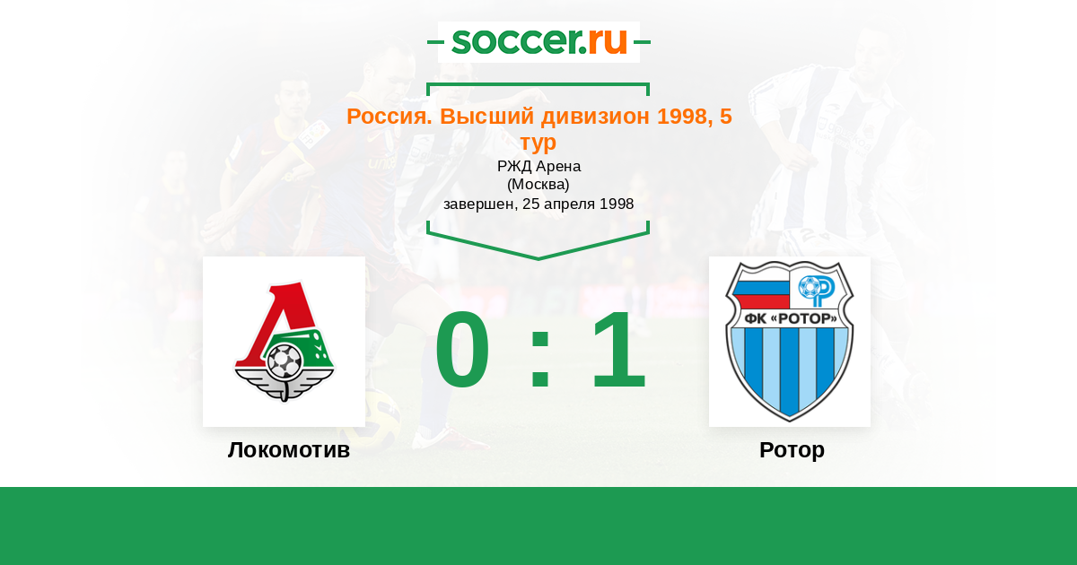 Россия. Премьер-Лига 07.08.1998 Ротор Логотип футбольный клуб Ротор (Волгоград) 3:2 Логотип футбольный клуб Локомотив (Москва) Локомотив