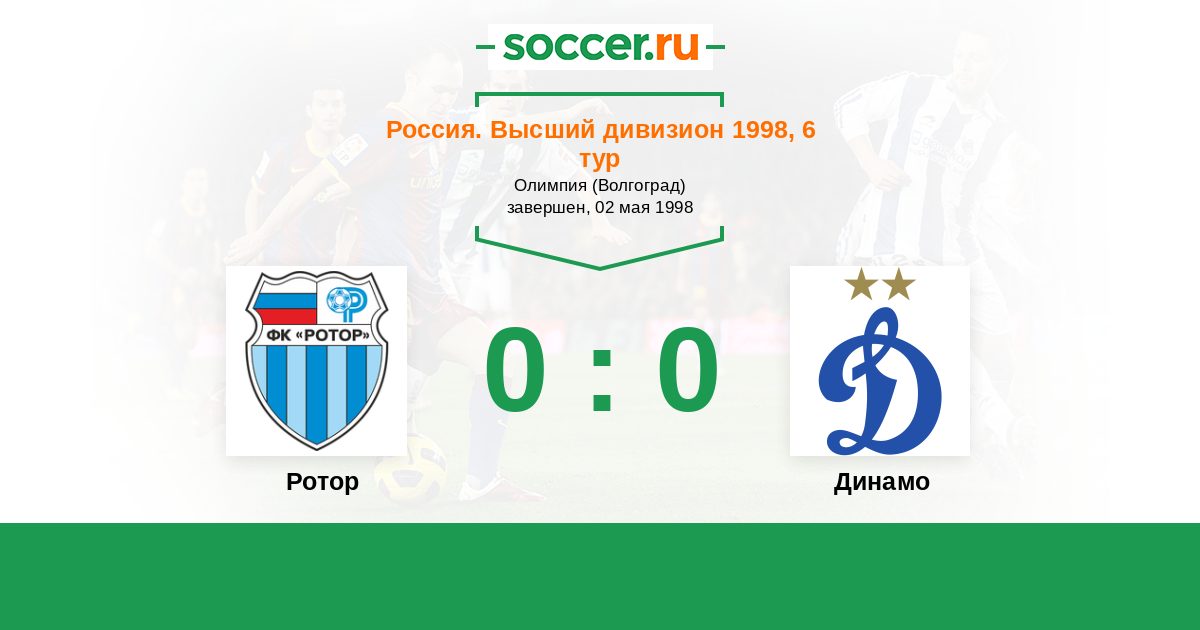 Россия. Премьер-Лига 26.05.1994 Ротор Логотип футбольный клуб Ротор (Волгоград) 1:1 Логотип футбольный клуб Динамо (Москва) Динамо