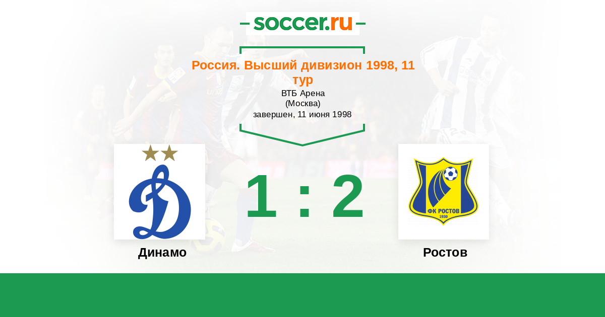 Россия. Премьер-Лига 01.07.1995 Ростсельмаш Логотип футбольный клуб Ростсельмаш (Ростов-на-Дону) 2:2 Логотип футбольный клуб Динамо (Москва) Динамо
