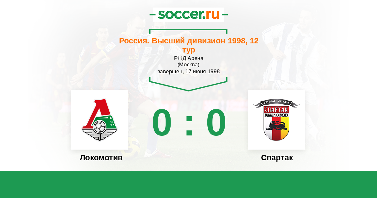 Россия. Премьер-Лига 23.08.1997 Локомотив Логотип футбольный клуб Локомотив (Москва) 1:0 Логотип футбольный клуб Спартак (Владикавказ) Спартак