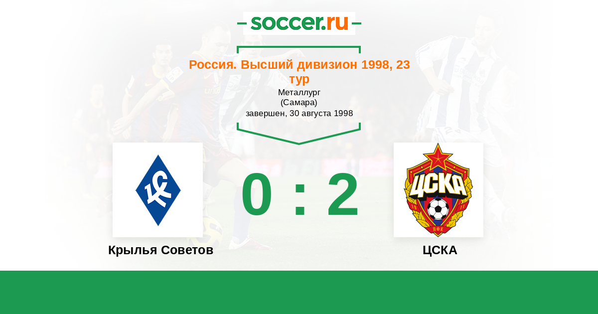Россия. Премьер-Лига 16.05.1998 ЦСКА Логотип футбольный клуб ЦСКА (Москва) 3:0 Логотип футбольный клуб Крылья Советов (Самара) Крылья Советов