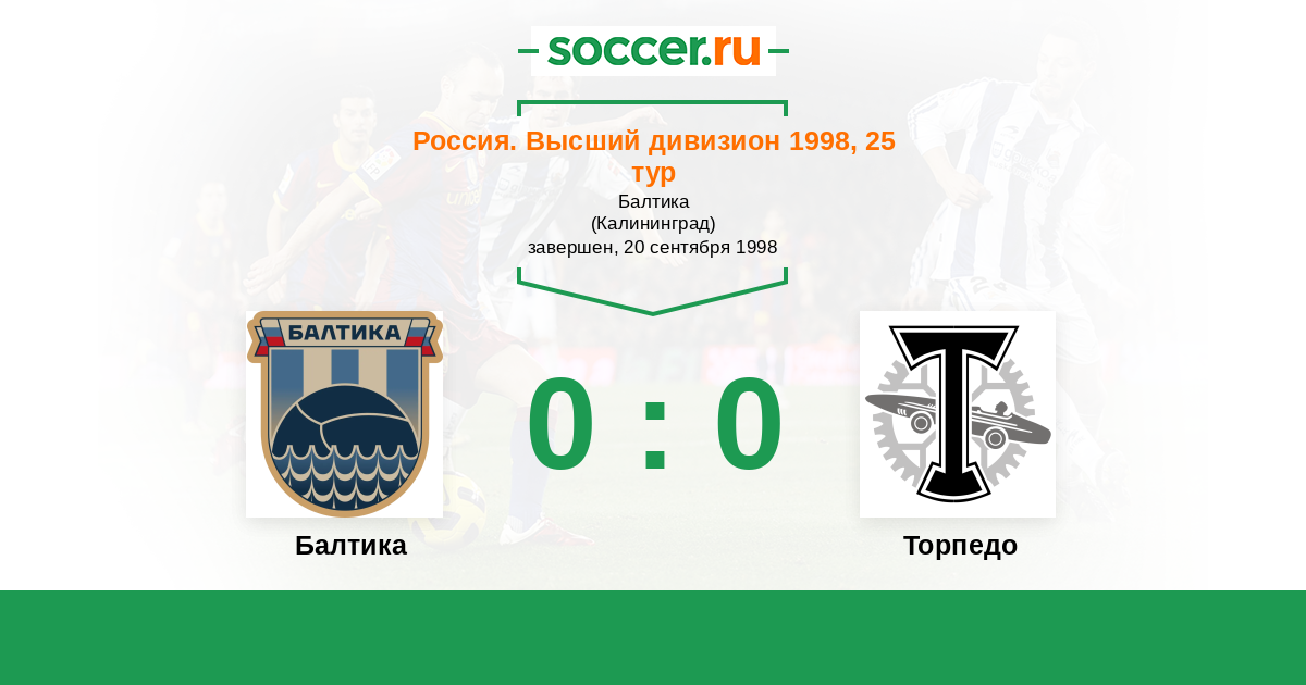 Россия. Премьер-Лига 03.06.1998 Торпедо Логотип футбольный клуб Торпедо (Москва) 0:0 Логотип футбольный клуб Балтика (Калининград) Балтика