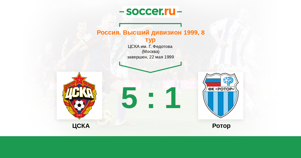 Россия. Премьер-Лига 28.08.1999 Ротор Логотип футбольный клуб Ротор (Волгоград) 1:1 Логотип футбольный клуб ЦСКА (Москва) ЦСКА