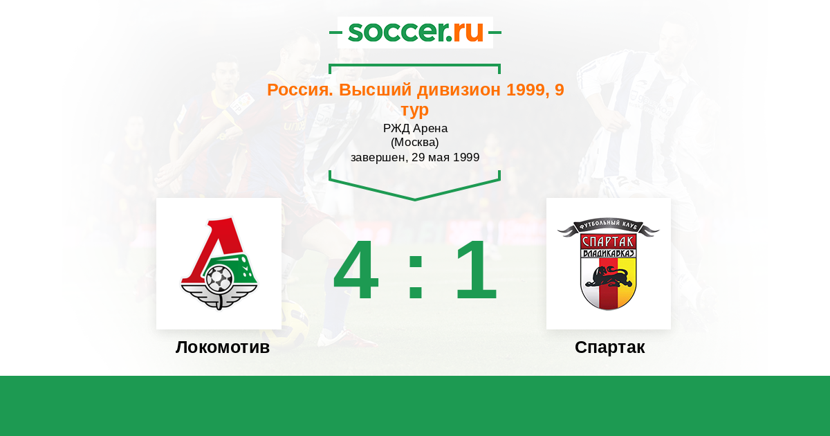 Россия. Премьер-Лига 23.08.1997 Локомотив Логотип футбольный клуб Локомотив (Москва) 1:0 Логотип футбольный клуб Спартак (Владикавказ) Спартак