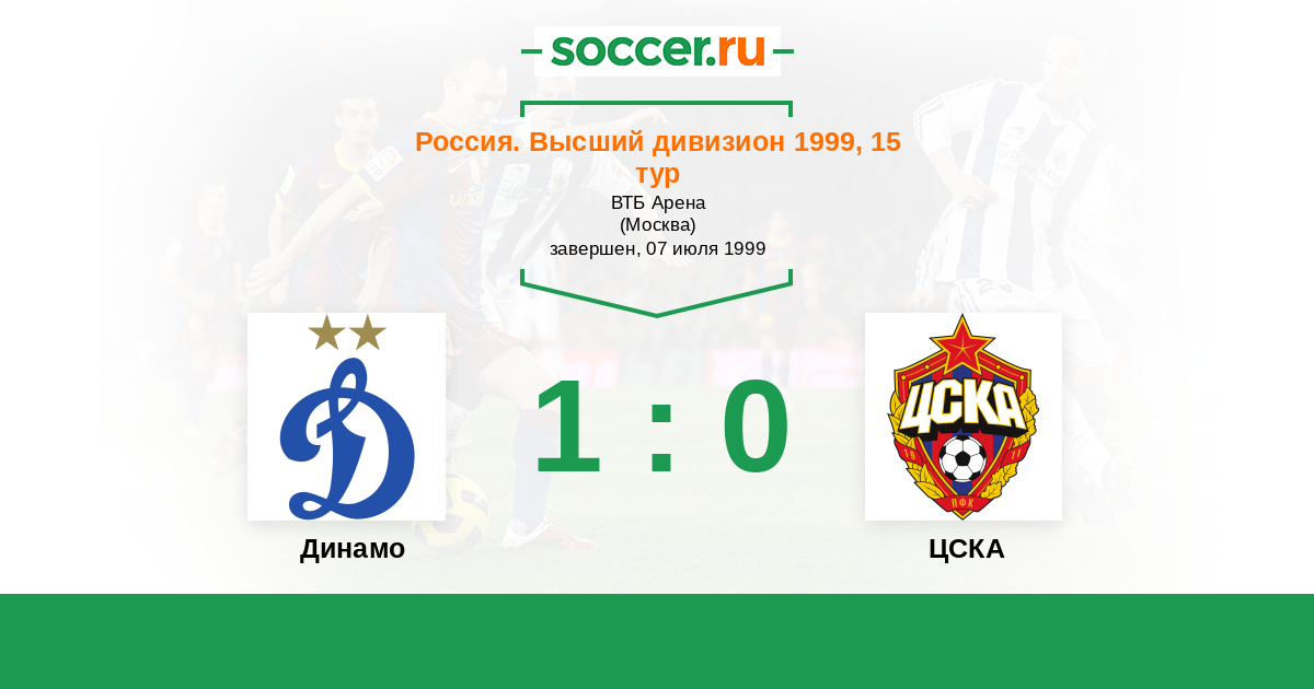 Россия. Премьер-Лига 22.07.1995 Динамо Логотип футбольный клуб Динамо (Москва) 0:1 Логотип футбольный клуб ЦСКА (Москва) ЦСКА