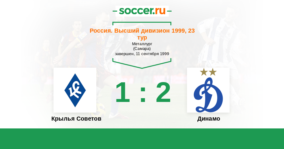 Россия. Премьер-Лига 29.05.1999 Динамо Логотип футбольный клуб Динамо (Москва) 3:3 Логотип футбольный клуб Крылья Советов (Самара) Крылья Советов