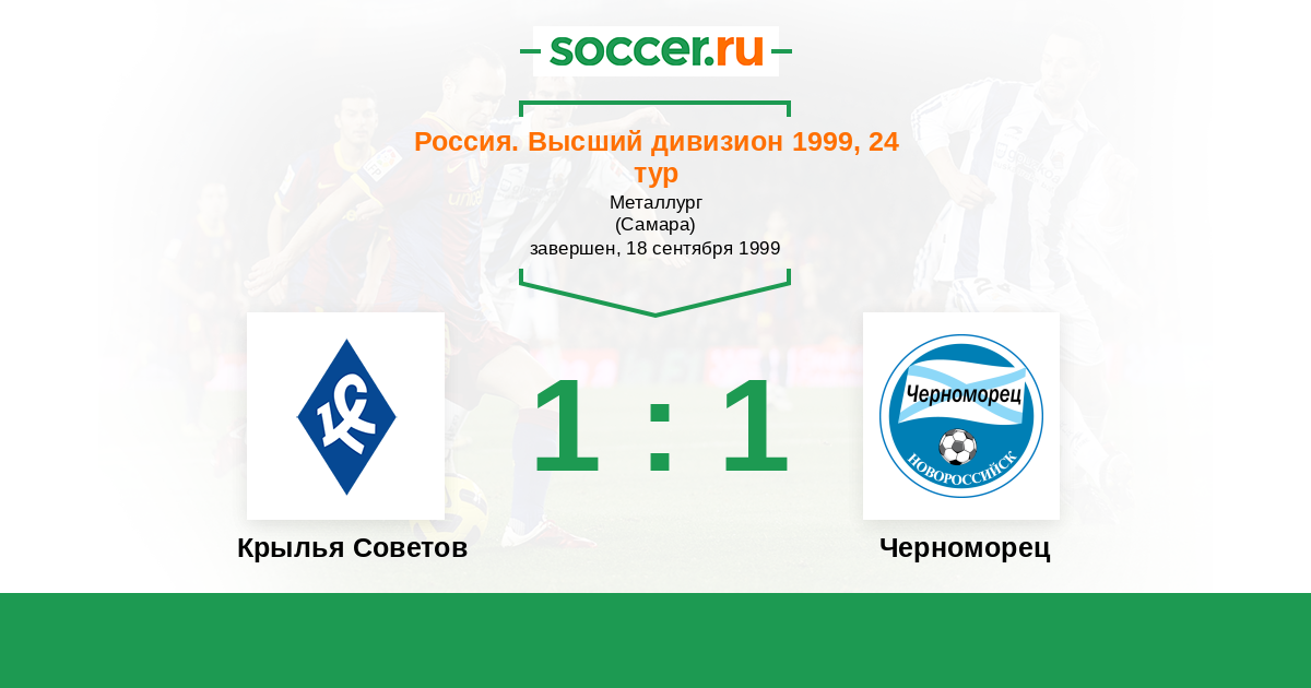 Россия. Премьер-Лига 13.06.1999 Черноморец Логотип футбольный клуб Черноморец (Новороссийск) 1:1 Логотип футбольный клуб Крылья Советов (Самара) Крылья Советов