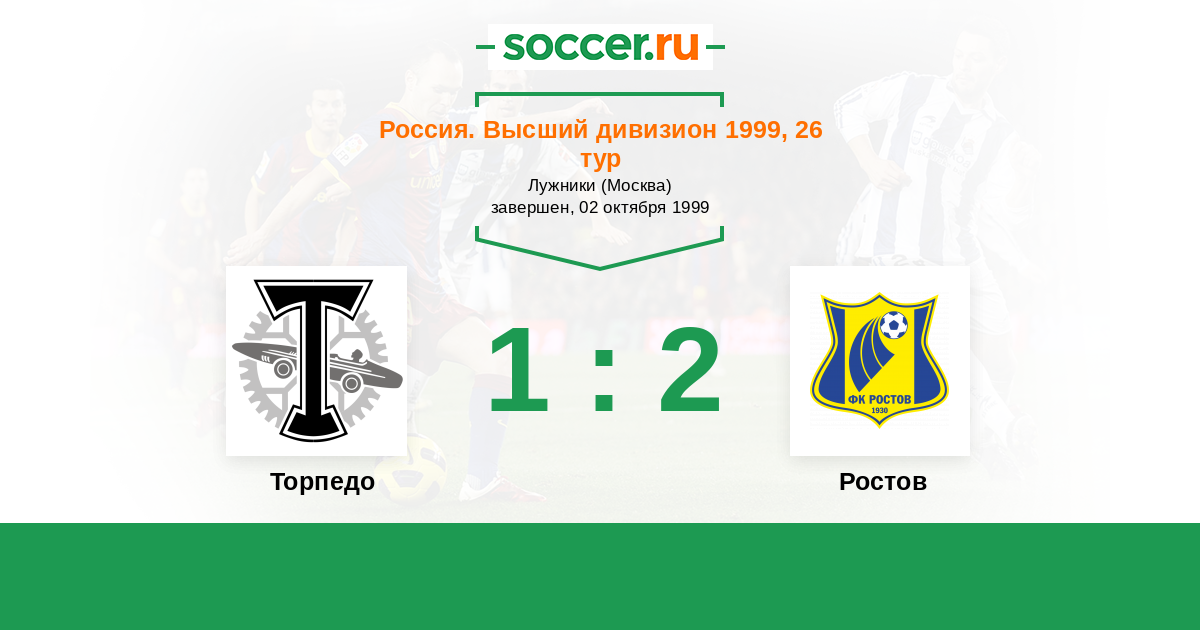 Россия. Премьер-Лига 25.10.1998 Торпедо Логотип футбольный клуб Торпедо (Москва) 3:1 Логотип футбольный клуб Ростсельмаш (Ростов-на-Дону) Ростсельмаш