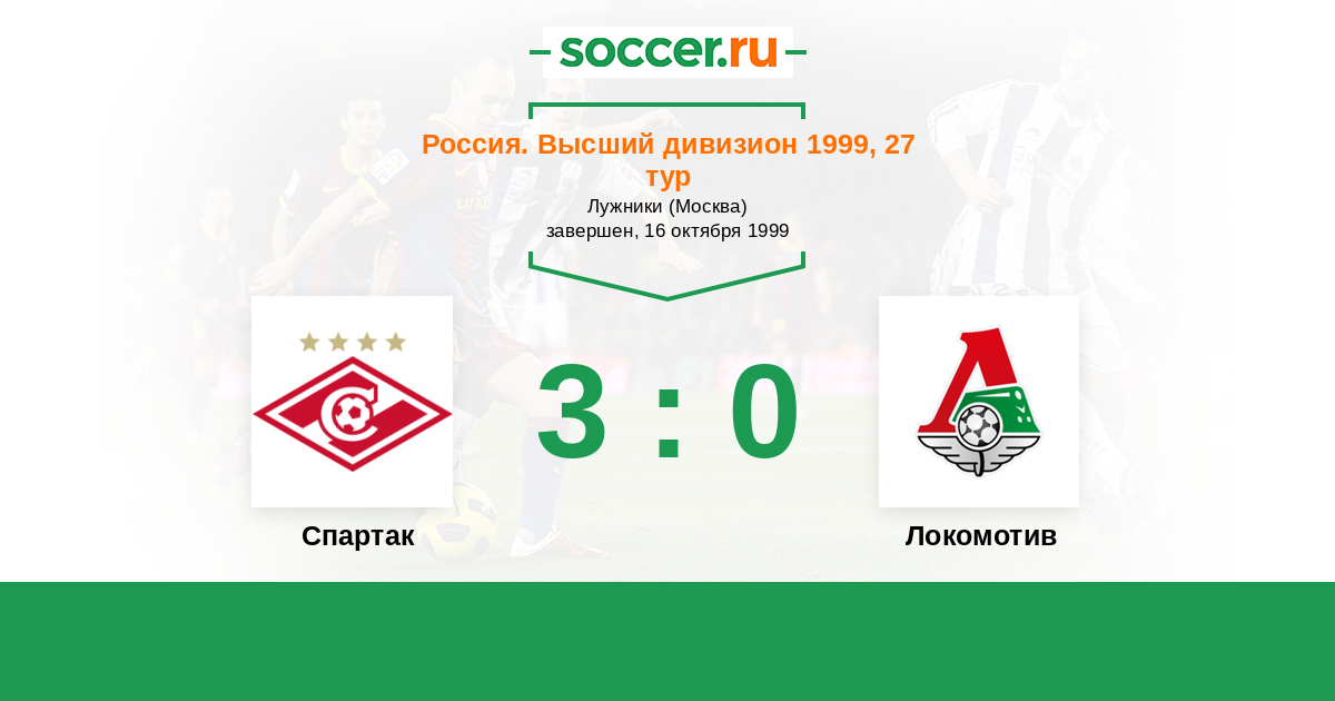 Россия. Премьер-Лига 27.06.1999 Локомотив Логотип футбольный клуб Локомотив (Москва) 0:3 Логотип футбольный клуб Спартак (Москва) Спартак
