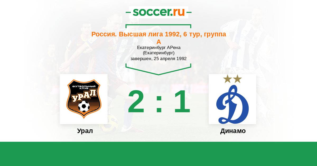 Россия. Премьер-Лига 12.07.1992 Динамо Логотип футбольный клуб Динамо (Москва) 6:2 Логотип футбольный клуб Уралмаш (Екатеринбург) Уралмаш