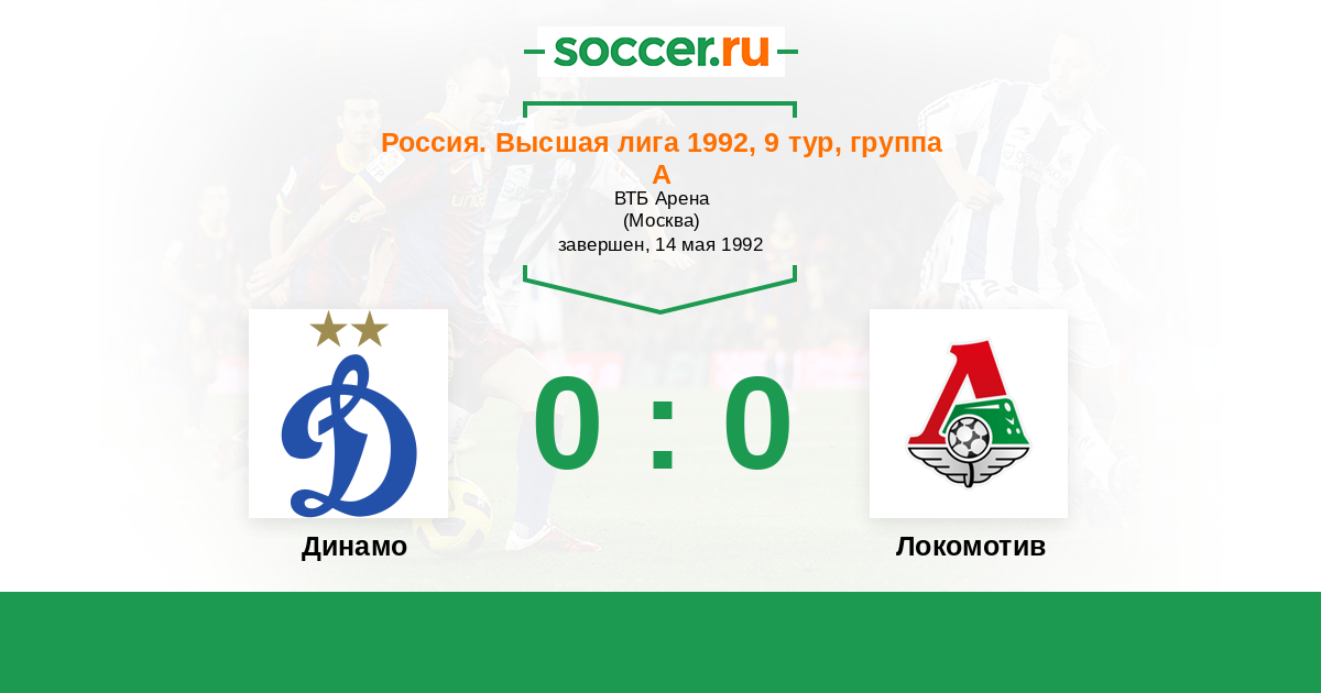Россия. Премьер-Лига 30.07.1992 Локомотив Логотип футбольный клуб Локомотив (Москва) 2:0 Логотип футбольный клуб Динамо (Москва) Динамо