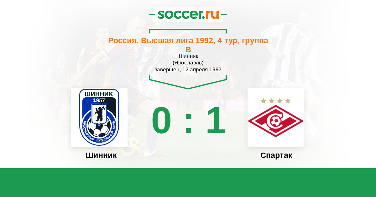 Россия. Премьер-Лига 23.07.1992 Спартак Логотип футбольный клуб Спартак (Москва) 0:0 Логотип футбольный клуб Шинник (Ярославль) Шинник