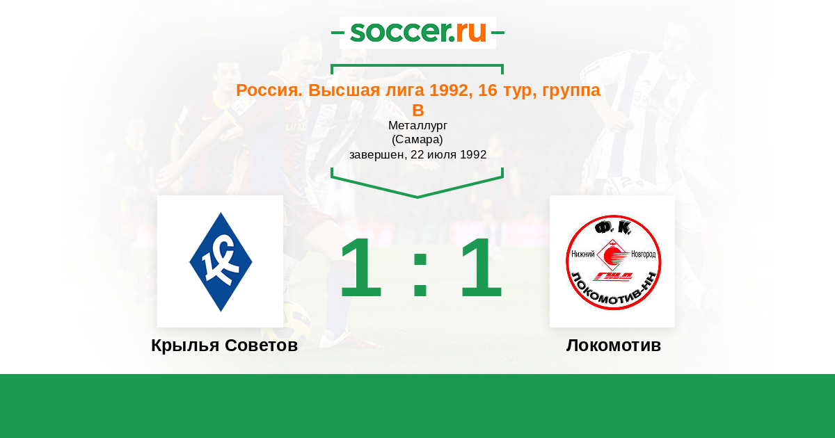 Россия. Премьер-Лига 05.05.1992 Локомотив Логотип футбольный клуб Локомотив (Нижний Новгород) 1:0 Логотип футбольный клуб Крылья Советов (Самара) Крылья Советов