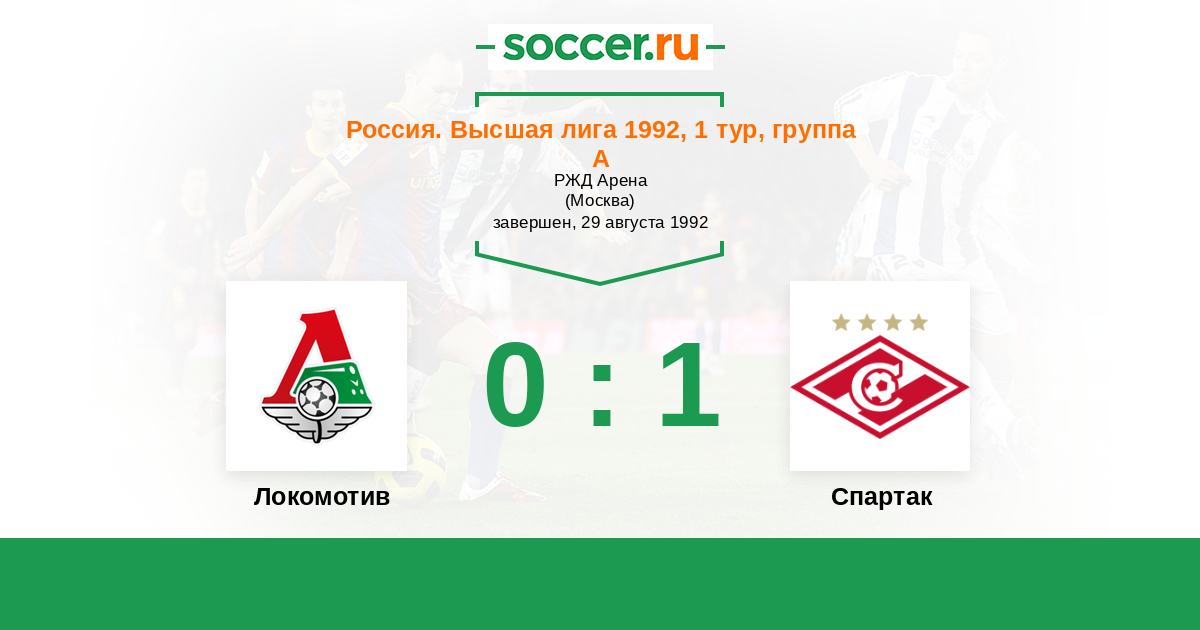 Россия. Премьер-Лига 17.10.1992 Спартак Логотип футбольный клуб Спартак (Москва) 4:1 Логотип футбольный клуб Локомотив (Москва) Локомотив