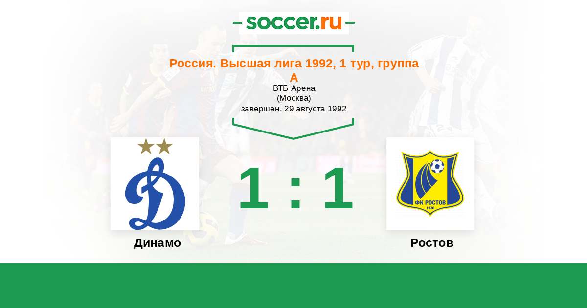 Россия. Премьер-Лига 26.08.1995 Динамо Логотип футбольный клуб Динамо (Москва) 1:1 Логотип футбольный клуб Ростсельмаш (Ростов-на-Дону) Ростсельмаш