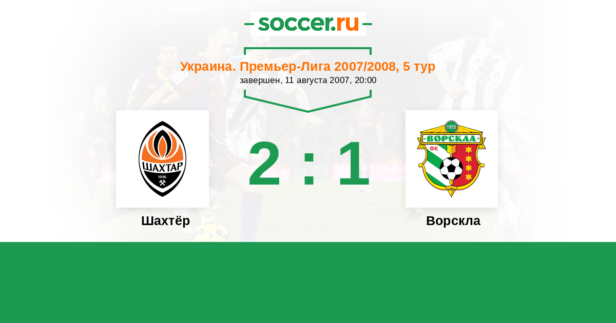 Украина. Премьер-Лига 07.04.2007 Шахтёр Логотип футбольный клуб Шахтёр (Донецк) 2:1 Логотип футбольный клуб Ворскла (Полтава) Ворскла