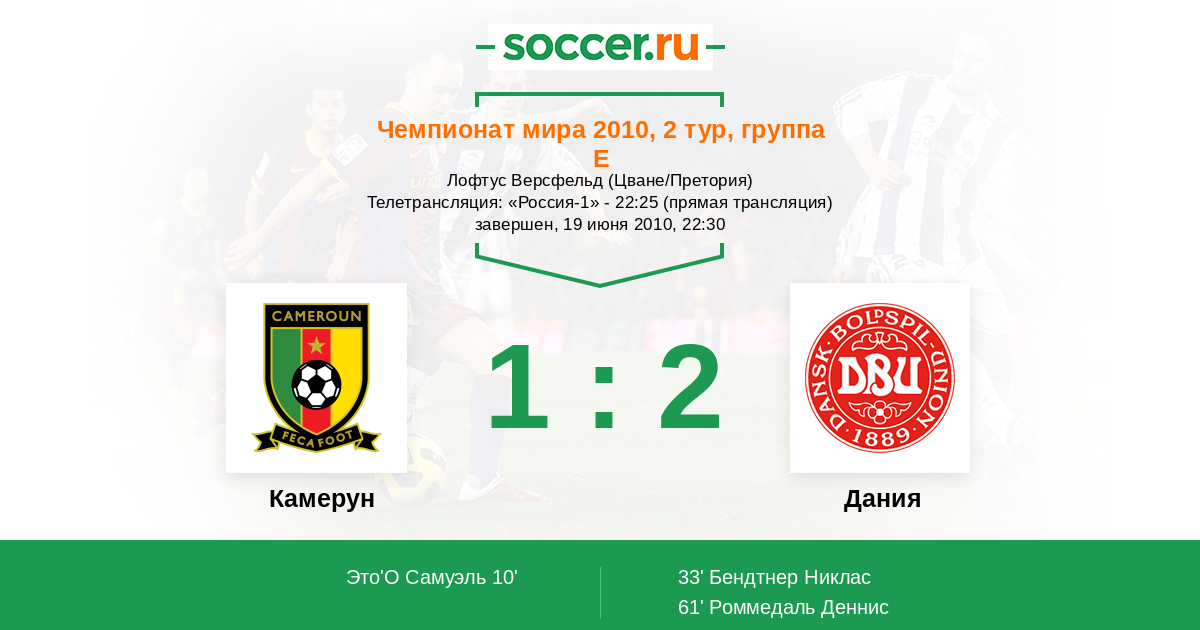 Протокол матча Камерун против Дания