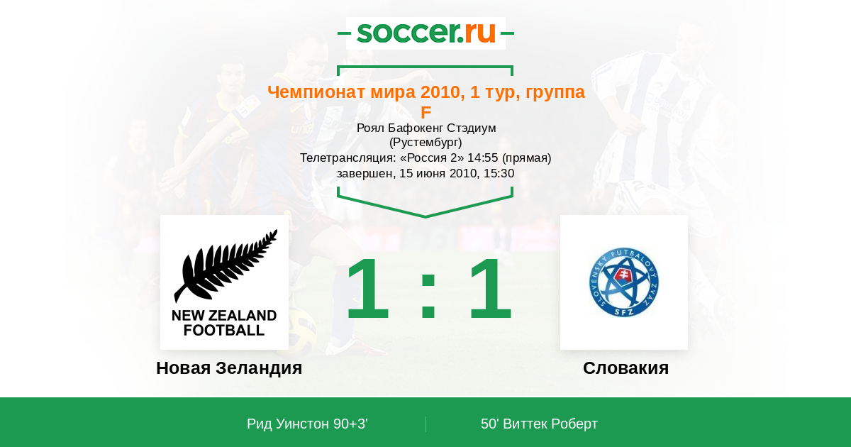 Протокол матча Новая Зеландия против Словакия