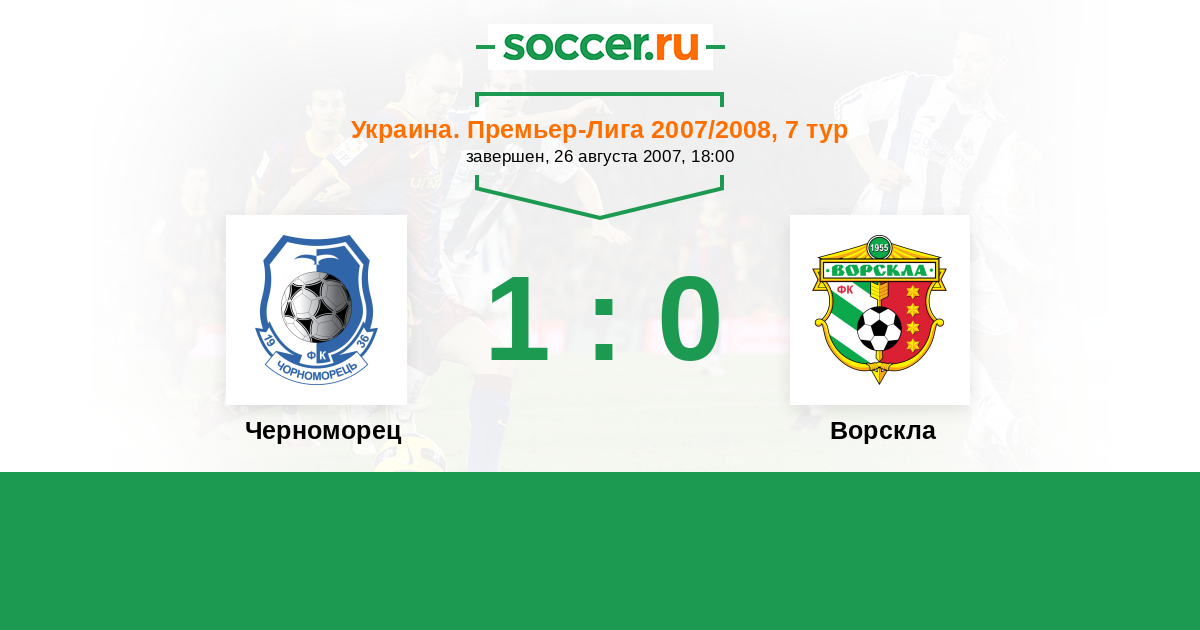 Украина. Премьер-Лига 29.04.2007 Ворскла Логотип футбольный клуб Ворскла (Полтава) 0:0 Логотип футбольный клуб Черноморец (Одесса) Черноморец