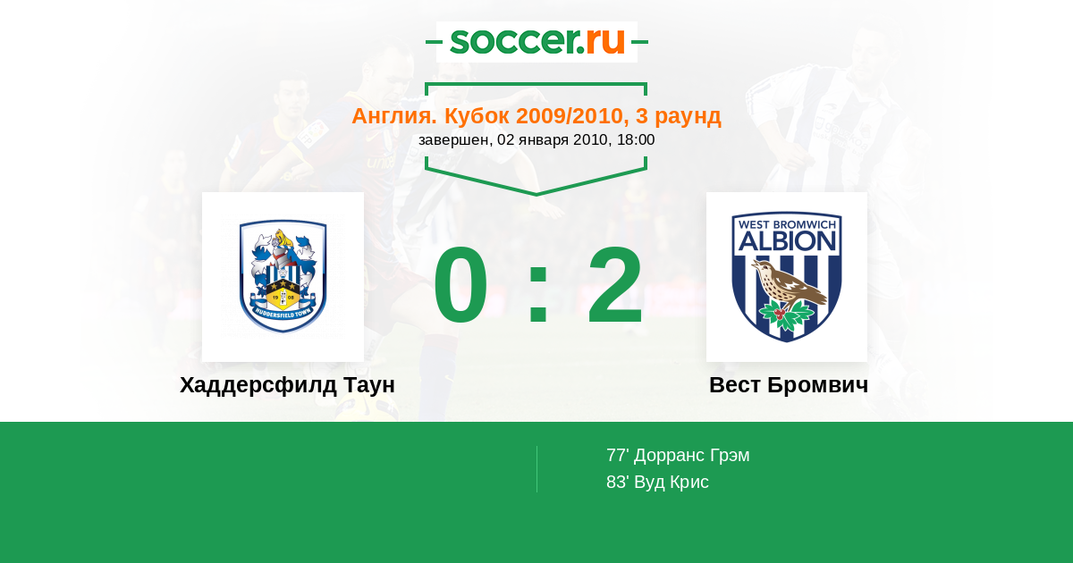 Протокол матча Хаддерсфилд Таун против Вест Бромвич