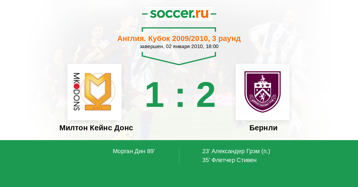 Протокол матча Милтон Кейнс Донс против Бернли