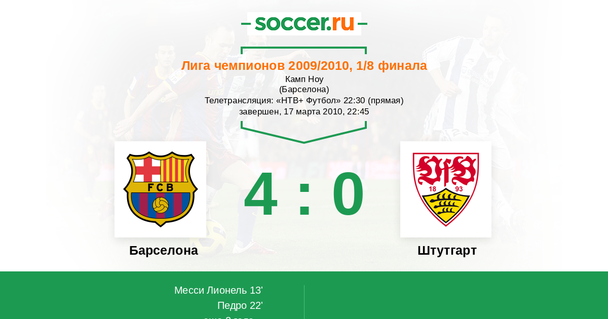 Протокол матча Барселона против Штутгарт