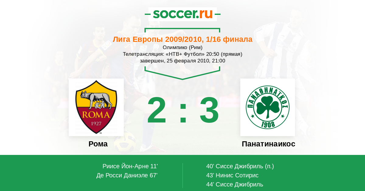 Протокол матча Рома против Панатинаикос
