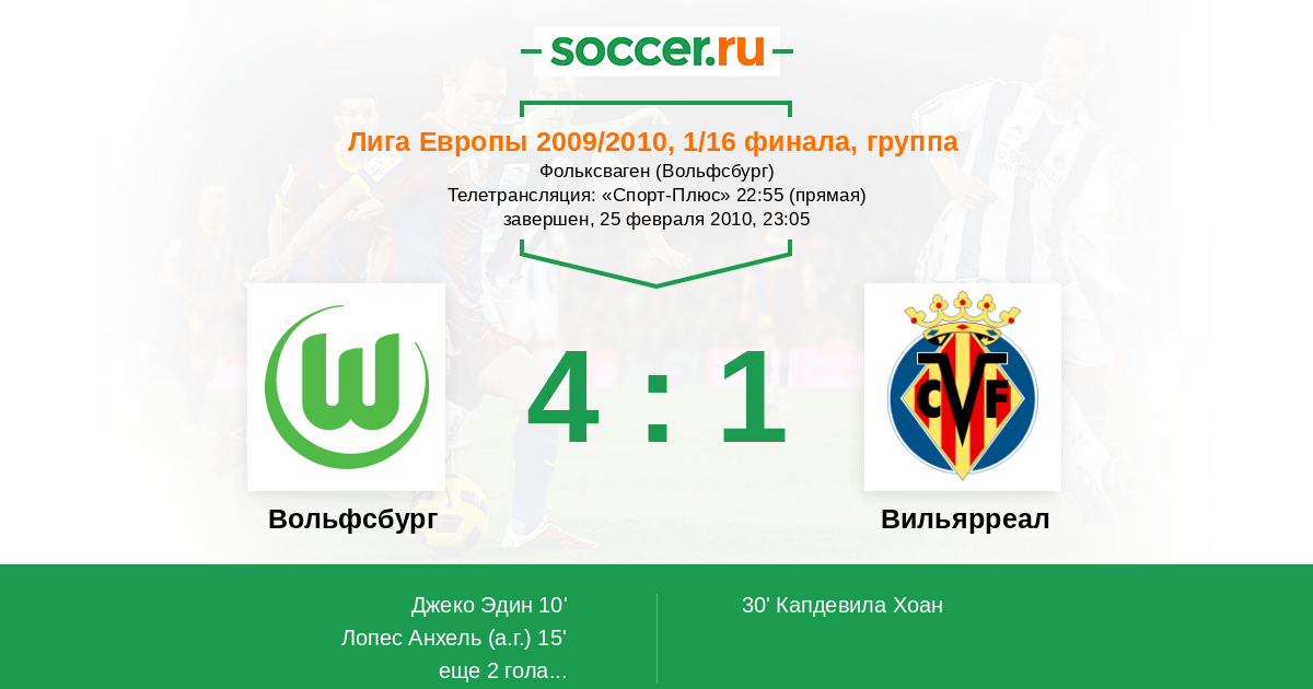 Протокол матча Вольфсбург против Вильярреал