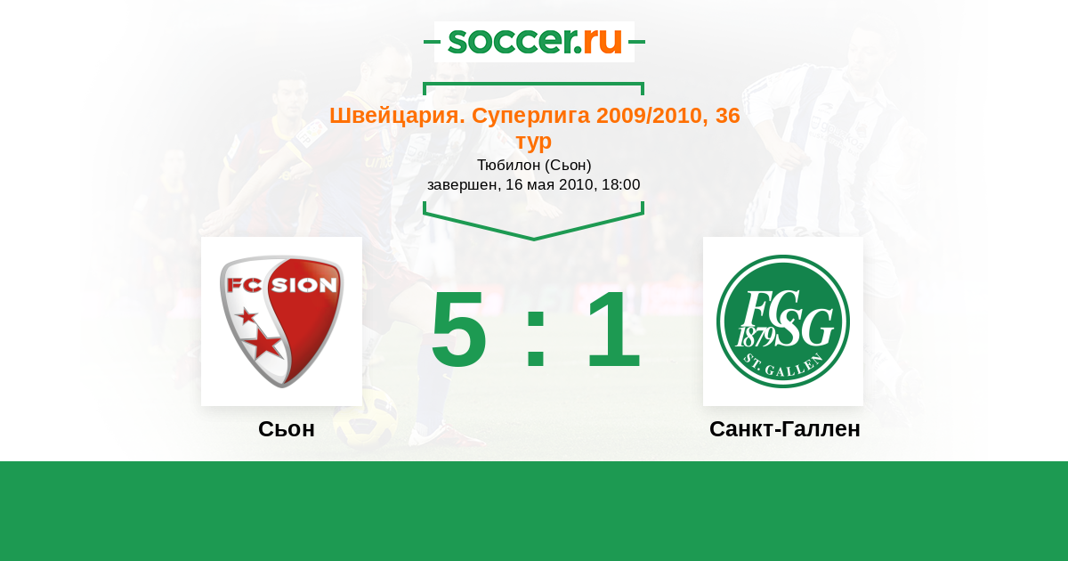 Швейцария. Суперлига 21.08.2010 Санкт-Галлен Логотип футбольный клуб Санкт-Галлен 1:1 Логотип футбольный клуб Сьон Сьон
