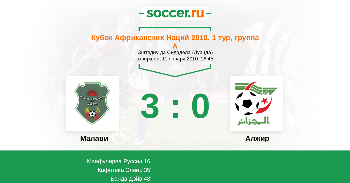 Протокол матча Малави против Алжир