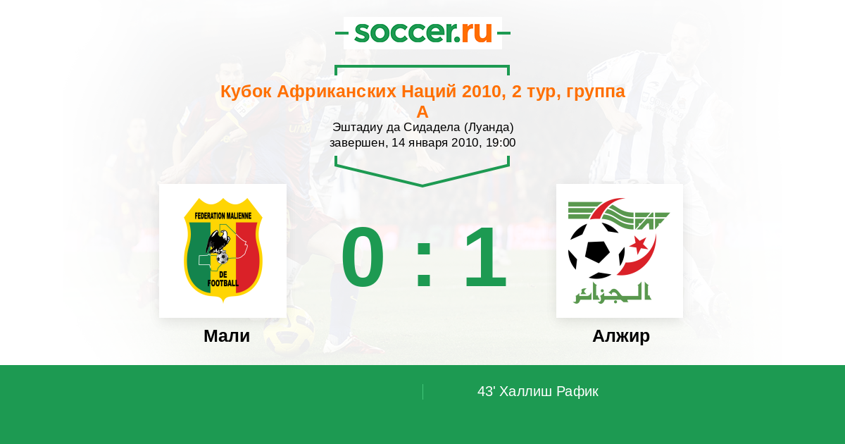 Протокол матча Мали против Алжир