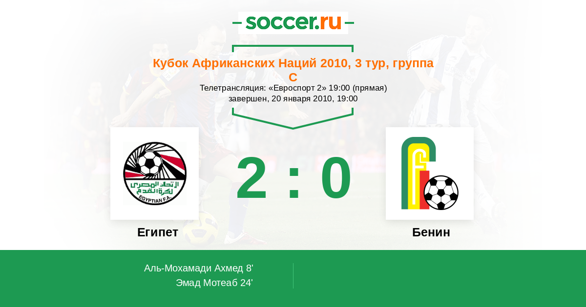 Протокол матча Египет против Бенин