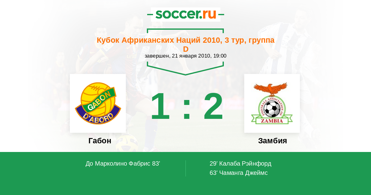 Протокол матча Габон против Замбия