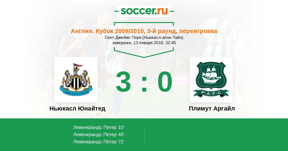 Протокол матча Ньюкасл Юнайтед против Плимут Аргайл