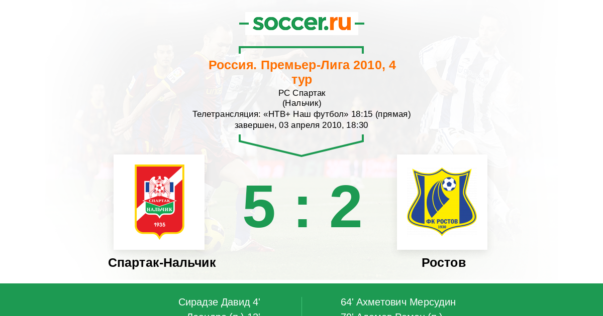 Протокол матча Спартак-Нальчик против Ростов